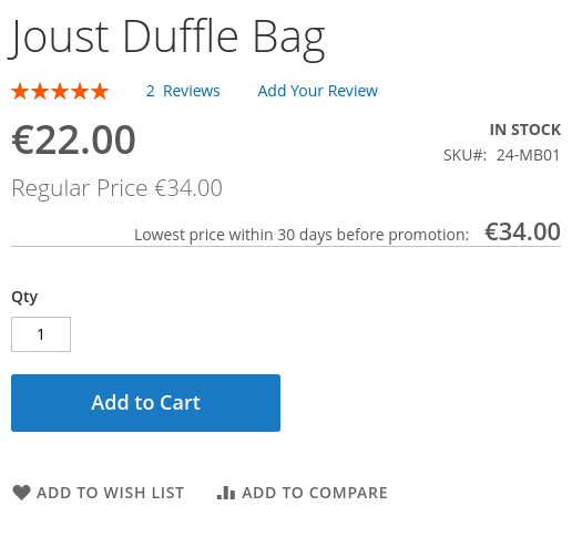 The extension monitors (tracks) all price changes and promotions in the store. Based on this data (if the product is on sale), it shows its lowest price on the site for the last 30 days from: